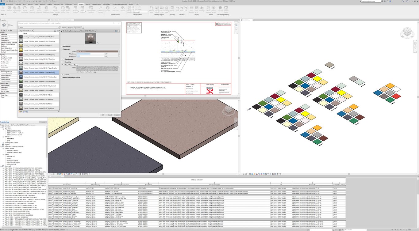 Fosroc Revit families have been created to a consistent, high standard with the objective of finding a balance between complexity of use, functionality, documentation output, file size and performance in a Revit project environment
