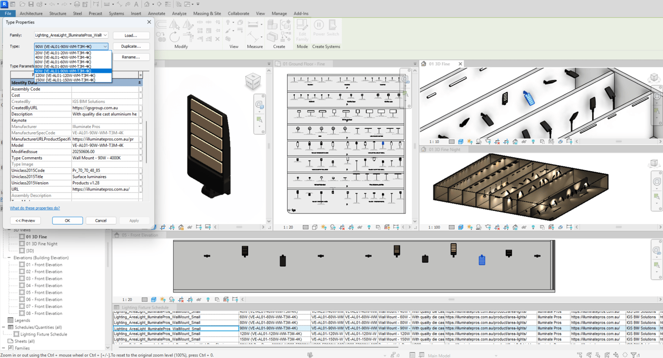 Illuminate Pros Revit families have been created to a consistent, high standard with the objective of finding a balance between complexity of use, functionality, documentation output, file size and performance in a Revit project environment