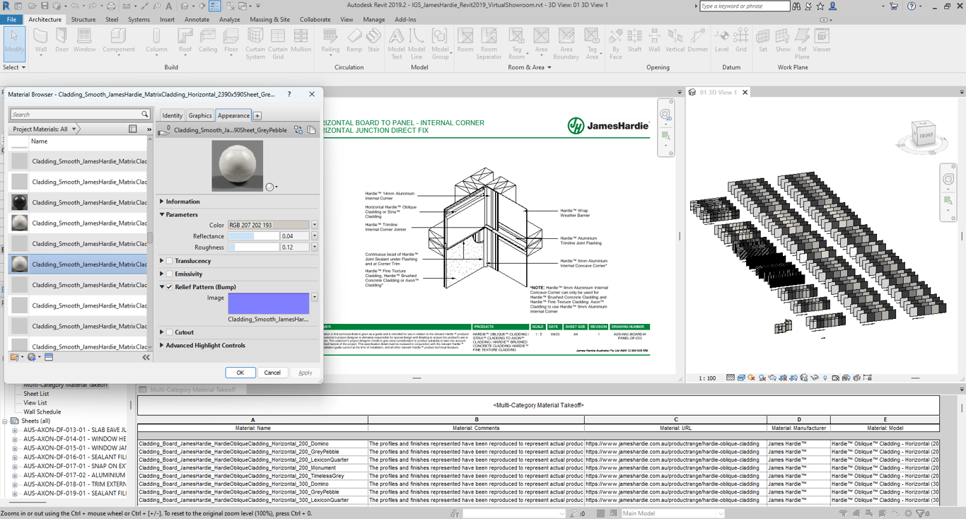 Design and specify Hardie™ Exterior Cladding Solutions with ease with our new Revit families. Expect a consistent, high standard of asset, created to find a balance between complexity of use, functionality, documentation output, file size and performance in a Revit project environment.
