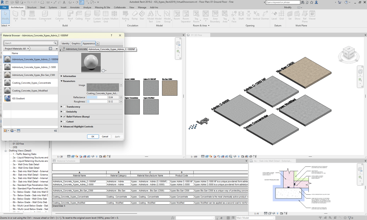 Xypex Revit families have been created to a consistent, high standard with the objective of finding a balance between complexity of use, functionality, documentation output, file size and performance in a Revit project environment